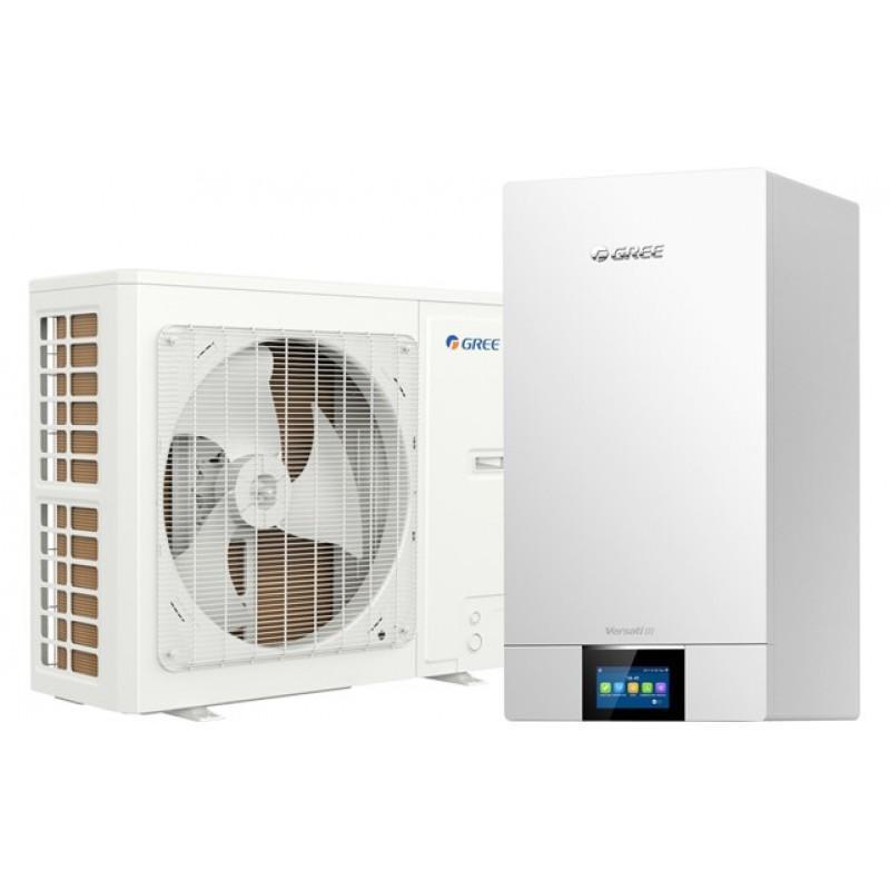 Тепловые насосы Gree GRS-CQ10Pd/NhH-M серии Versati III (сплит-системы) «воздух-вода» с инверторными компрессорами с впрыском пара предназначены для нагрева воды для горячего водоснабжения или напольного отопления, а также для отопления или охлаждения воздуха в помещении до 100 м²Особенности и функции Gree GRS-CQ10Pd/NhH-M